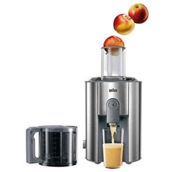 آبمیوهگیری براون مدل «J700» یکی از آبمیوهگیریهای تککاره موجود در بازار است. این دستگاه از بدنهای از جنس پلاستیک بادوام و استیل ساخته شده و استحکام خوبی دربرابر ضربه دارد. قسمت ورودی میوهها در بخش بالایی دستگاه واقع شده است که با قطر زیادی که دارد، میتواند بهآسانی قطعات بزرگ میوه را از خود عبور دهد. این ویژگی کار با دستگاه را آسانتر کرده و به آن سرعت بخشیده است. در طراحی این محصول استوانهای در نظر گرفته شده که پس از قرار دادن میوه بر دهانه ورودی دستگاه میتوان با استفاده از آن میوه را به سمت تیغهها هل داد.